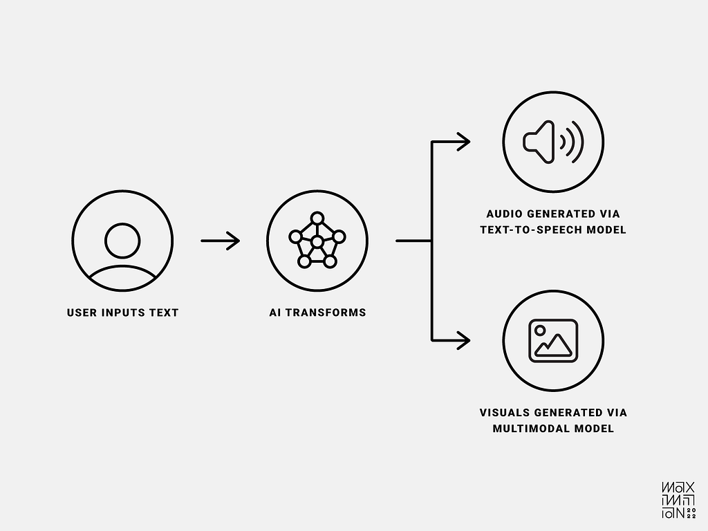 For the unfamiliar, Twitter's microblogging experience was born out of SMS(short messaging service). Initially the only way to tweet was via text message. Since the constraints of this protocol shaped the form of a Tweet, it was a logical assumption that the viewing experience should also feel like a text message — if only for skeuomorphic reasons. While that decision made sense decades ago, it's an interesting assumption to challenge now that support for SMS compatibility is shrinking. While other media is allowed on Twitter, the core feature is still a block of text & that shapes product perception. But with all the text-to-speech & text-to-image AI available today, there's no longer a technical requirement for a text input to remain a text output.